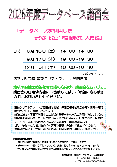 E-mail : cl-library(at)seirei.ac.jp